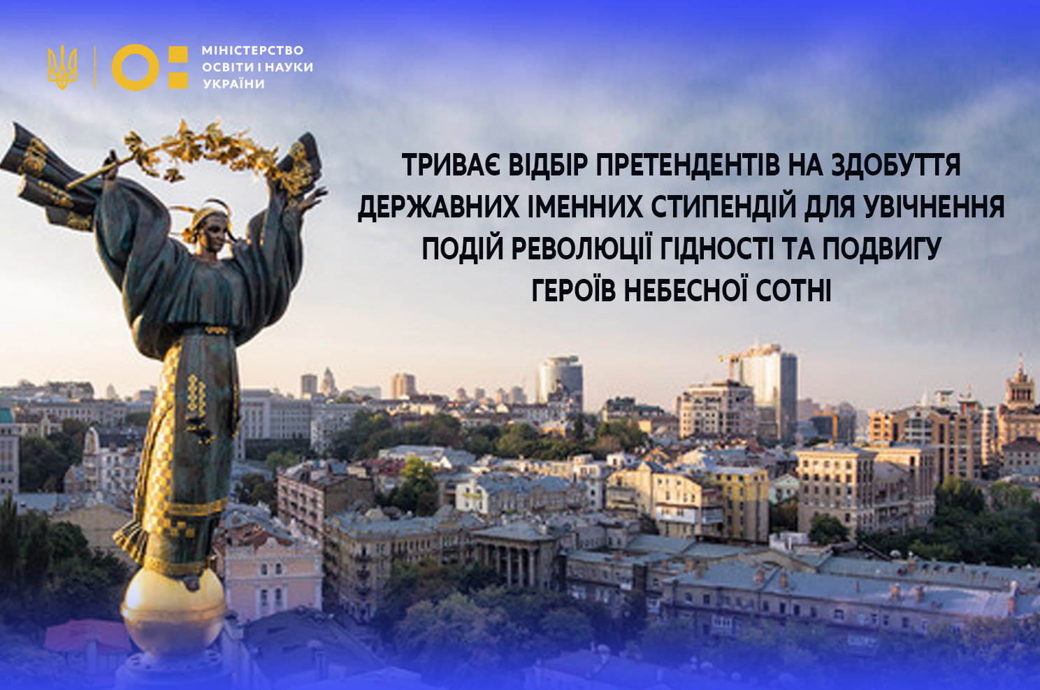 АКАДЕМІЧНА СТИПЕНДІЯ ІМЕНІ ГЕРОЇВ НЕБЕСНОЇ СОТНІ: ТРИВАЄ ВІДБІР КАНДИДАТІВ07 Травня 2021р.![]() Розпочато цьогорічний відбір кандидатів на призначення академічних стипендій імені Героїв Небесної Сотні. Стипендія заснована на честь 10 наймолодших Героїв Небесної Сотні. Збір кандидатів на призначення стипендій триватиме до 1 червня 2021 року. Участь у конкурсі можуть брати студенти, які своєю активною громадянською позицією утверджують ідеали та цінності Революції Гідності. П’ятдесят академічних стипендій можуть отримати студенти та курсанти державних закладів вищої освіти за спеціальностями: