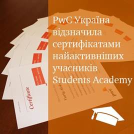 PwC відзначила найактивніших учасників Студентської академії07 Червня 2013р.![]() У середу, 5 червня 2013, у головному офісі PwC Ukraine відбулося вручення сертифікатів найактивнішим учасникам курсу лекцій від студентської академії PwC. Даний курс проводився для студентів КНЕУ у період з жовтня 2012 по квітень 2013, що пройшли попередній відбір. Дев’ятнадцять найактивніших студентів були запрошені до офісу PwC у Києві, щоб отримати сертифікати, підписані одним із партнерів PwC Україна, та у неформальній атмосфері поспілкуватися з представниками фірми та один з одним. Ми ще раз вітаємо студентів та бажаємо їм найвищих досягнень у майбутньому!